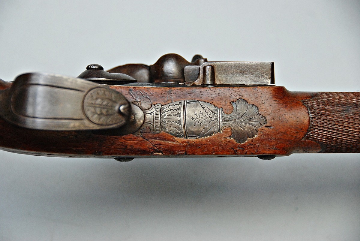 Hunting rifle, France, period of the First Empire (1804-1814). Master Connelier in Paris. The peculiarity of the gun is in its unique stock, which was custom-made for a right-handed man without a right eye.