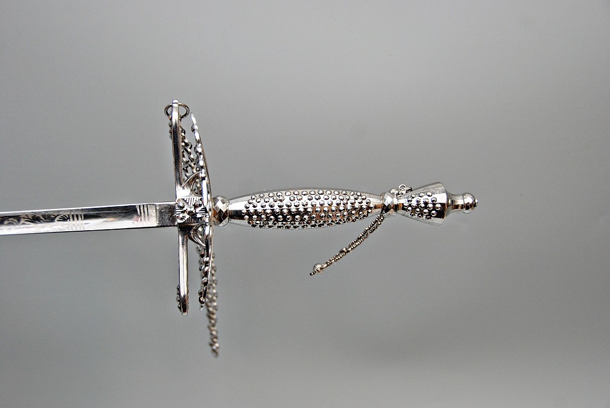 The small sword of an English official selling antique swords, end of 19th century. The handle and guard are made using the diamond cut technique. Original hunger